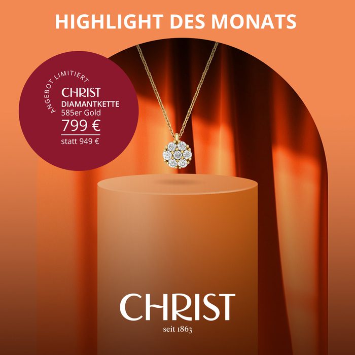 christchrist diamantkette preis: 799 € statt 949 € zeitraum: 01.01. – 31.01.2026 einfach brillant: demonstrieren sie ihr stilbewusstsein mit dieser feingliedrigen halskette von christ diamonds. der edle goldglanz des zeitlos schönen schmuckstücks betont das funkeln der weißen diamanten mit ca. 0,20 karat. unser fazit: ein wirkungsvolles schmuck-accessoire, um ihrem eleganten outfit den letzten schliff zu […]08.01.2026 bis 31.01.2026Christ