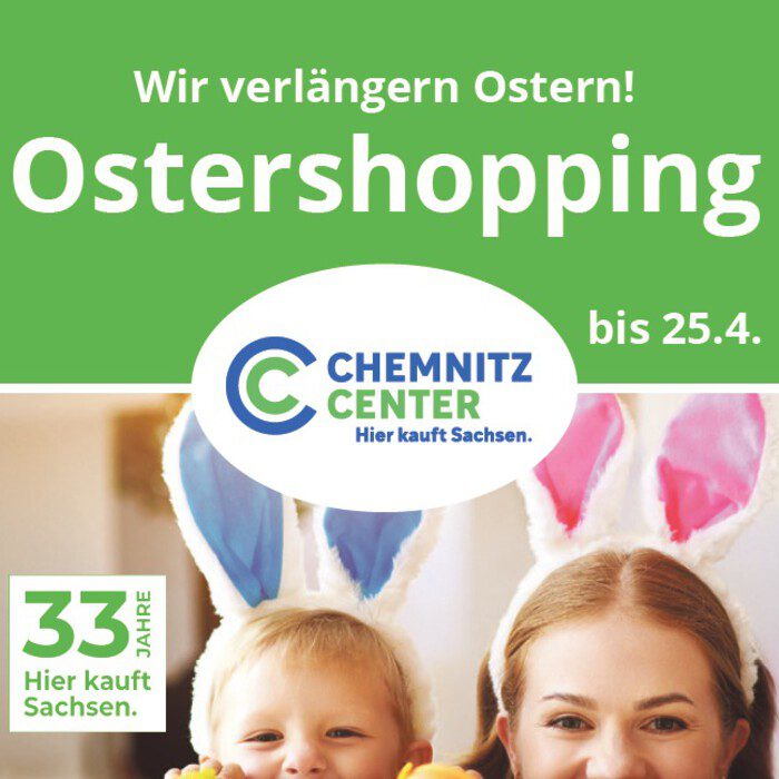 ostern wir verlängern ostern! zu ostern erwartet euch im chemnitz center wieder eine besondere atmosphäre. bis zum 25. april 2026 erstrahlt das center in fröhlichen osterfarben und lädt mit liebevoller dekoration, großen hasenfiguren und frühlingshafter stimmung zum bummeln und verweilen ein. freut euch auf eine bunte mischung aus aktionen, osterstimmung und familienfreundlicher atmosphäre. ostern für die ganze familie ein […]16.03.2026 bis 25.04.2026Ostern